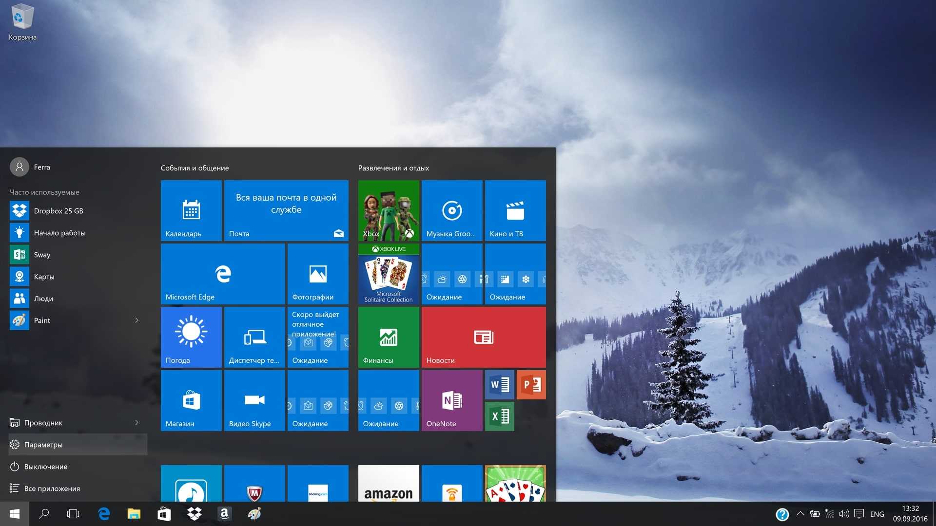 Внешний вид рабочего стола на операционной системе Windows 10
