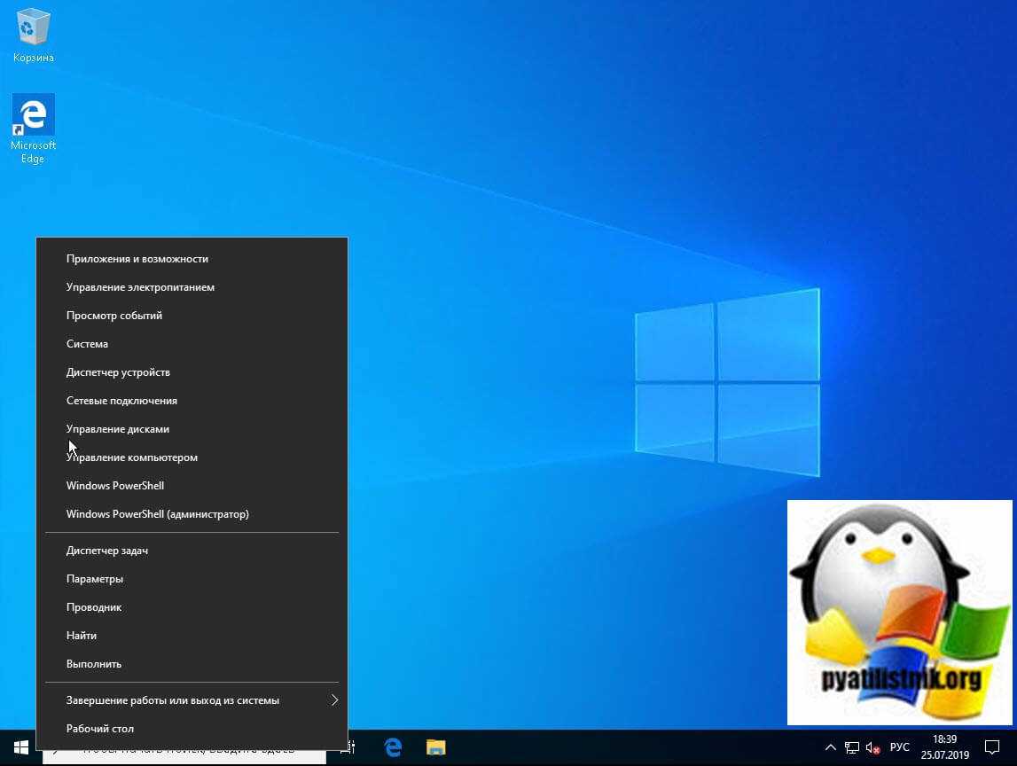 Вызываем инструмент Windows PowerShell с правами администратора. Для этого нажимаем правой кнопкой мыши на «Пуск» и в открывшемся списке выбираем нужную строку.