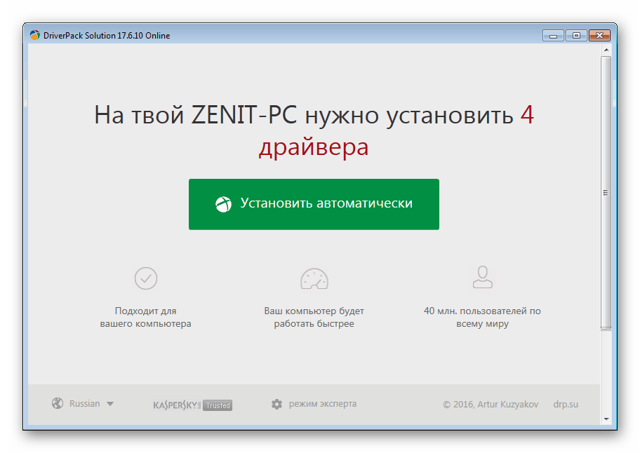 Подробнее:Как установить или обновить драйверы с помощью DriverPack SolutionУстанавливаем и обновляем драйверы через DriverMax