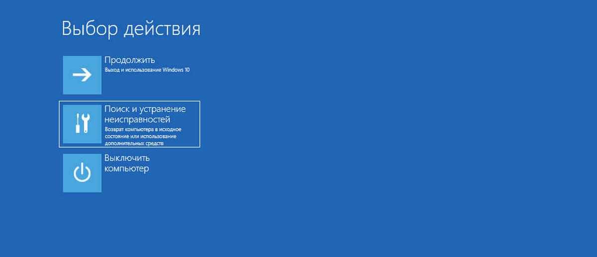 Перед нами появится окно “Выбор действия”, в котором выбираем пункт “Поиск и устранение неисправностей”.