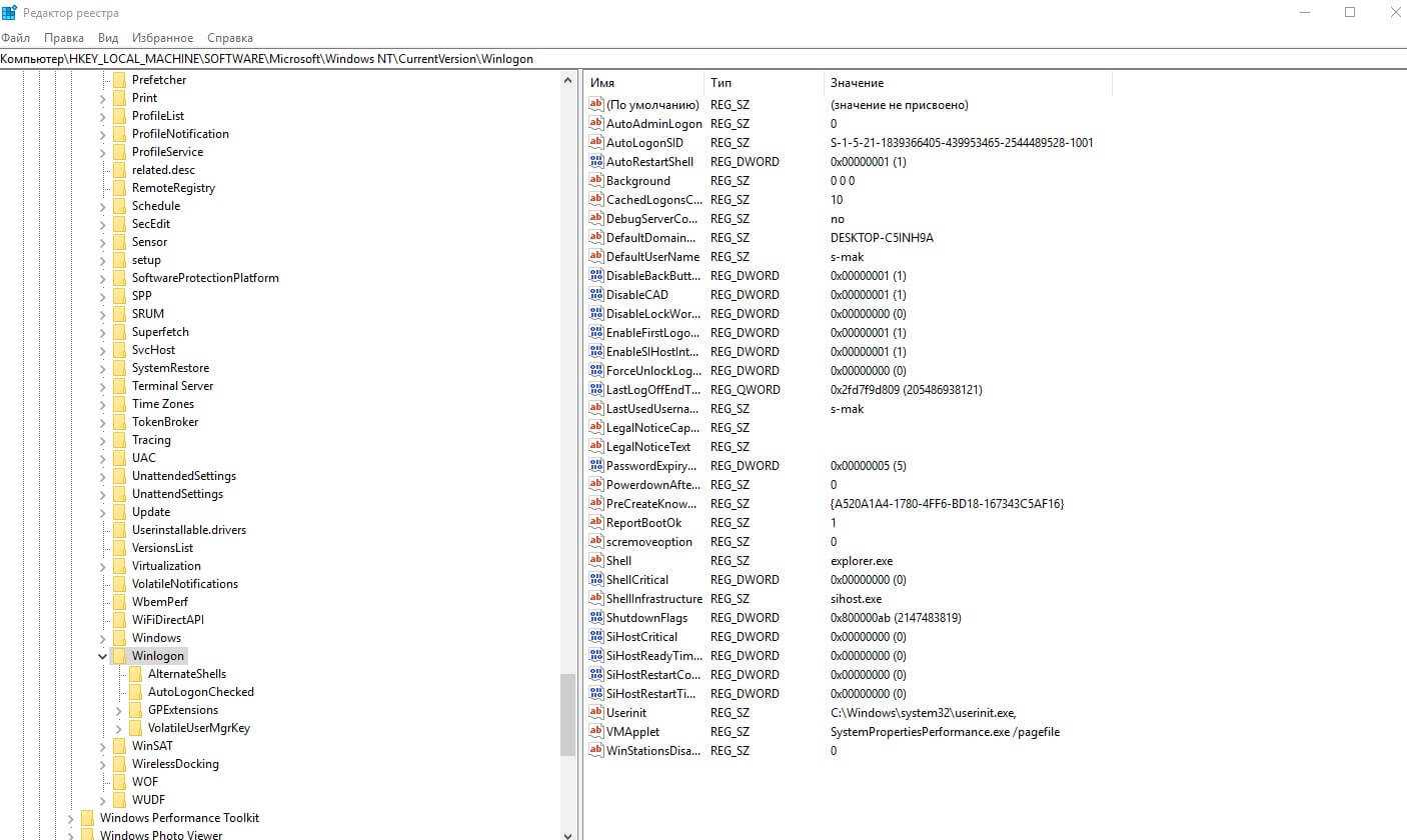 Убираем пароль Windows 10 с помощью редактирования реестра