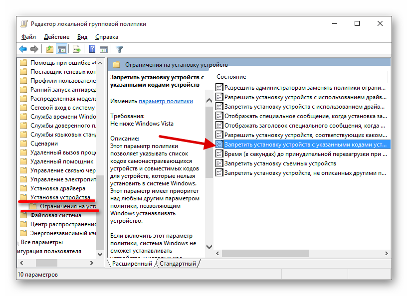 Перейдите по пути «Конфигурация компьютера» — «Административные шаблоны» — «Система» — «Установка устройств» — «Ограничения на установку устройств».