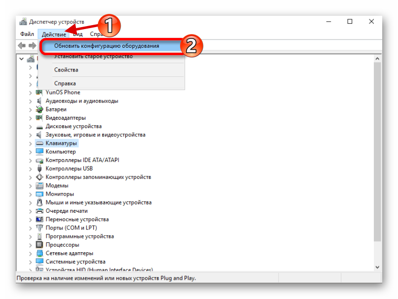 Чтобы включить оборудование обратно, вам нужно будет проделать те же шаги, но выбрать пункт «Задействовать». Если вы удаляли драйвер, то в верхнем меню кликните на «Действия» — «Обновить конфигурацию оборудования».