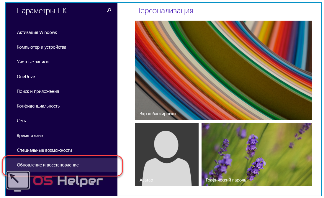 Обратите внимание на левую часть окна. Нас интересует пункт «Обновление и восстановление»