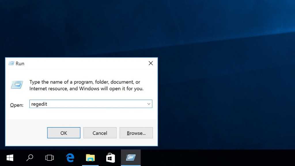 Как известно, практически все параметры Windows 10 хранятся в ее реестре, поэтому изменять настройки ОС можно напрямую. Если кто не знает, запускается приложение для внесения коррективов в реестр при помощи команды «regedit», введенной в поисковую строку или текстовую строку окошка «Выполнить» (Win+R).
