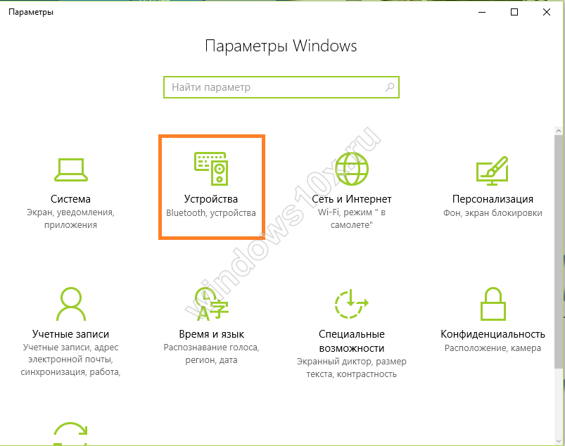 5. Горячими клавишами Win + I запустите окошко параметров Windows 10. В строке «Найти параметр» напечатайте «Диспетчер устройств». После того, как элемент будет найден появиться подсказка, вот на нее надо нажать ЛКМ или использовать стрелку вниз, а затем кнопку Enter.