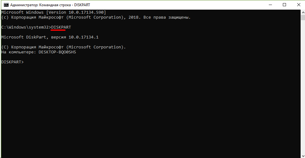 Самый экзотический способ переименования букв томов. В тяжелых ситуациях его можно использовать, когда нет возможности загрузить Windows. После загрузки в режиме командной строки печатаем команду DISKPART и давим клавишу «ВВОД»