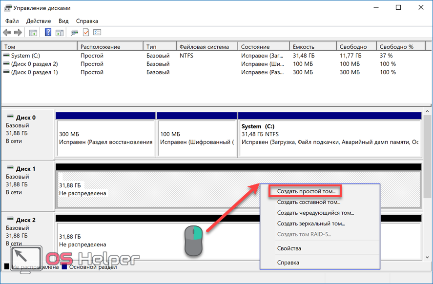 - Размер тома не изменяем, а создаем один с использованием всего доступного объема.