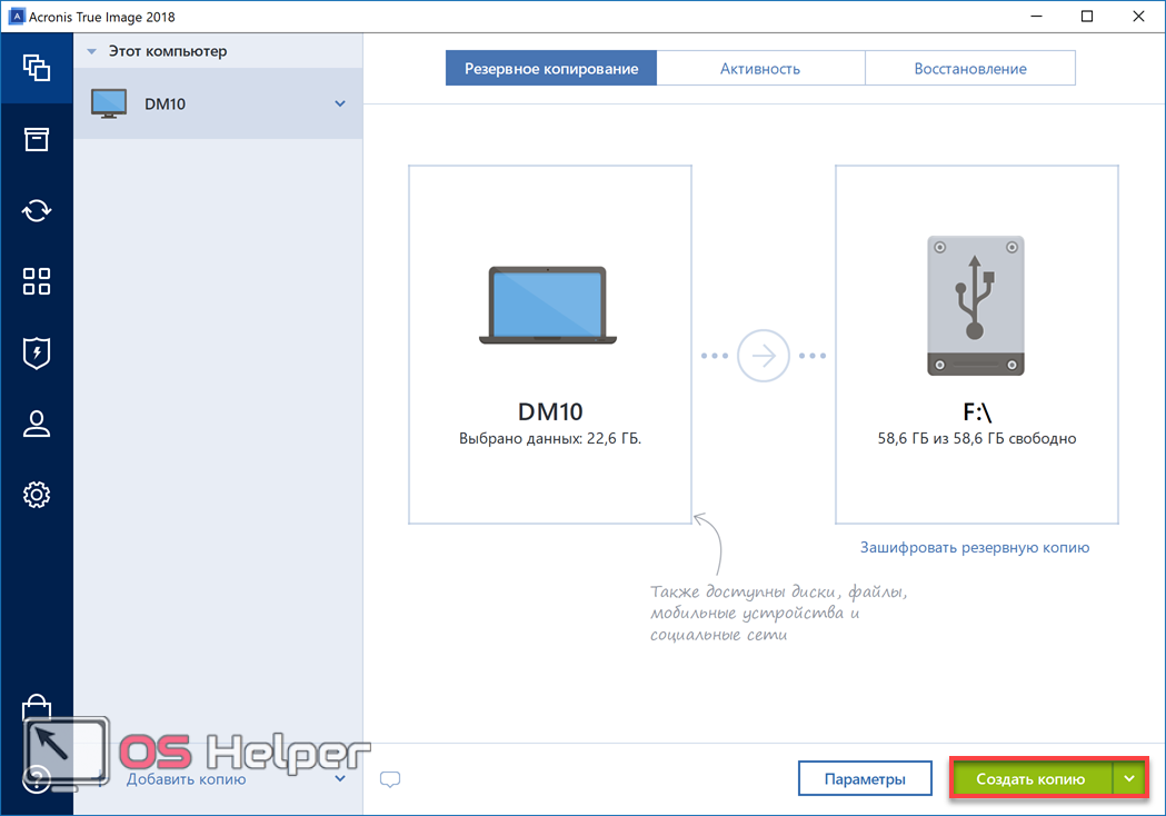 Далее будет показан перенос системы на примере платной программы Acronis True Image.