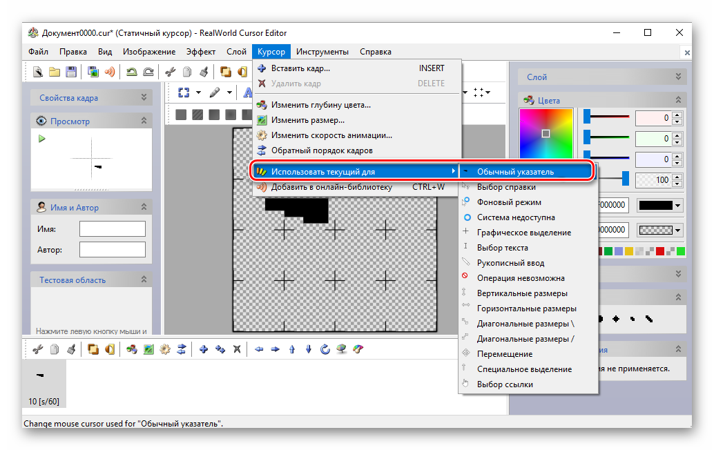 Программа RealWorld Cursor Editor позволяет рисовать качественные курсоры