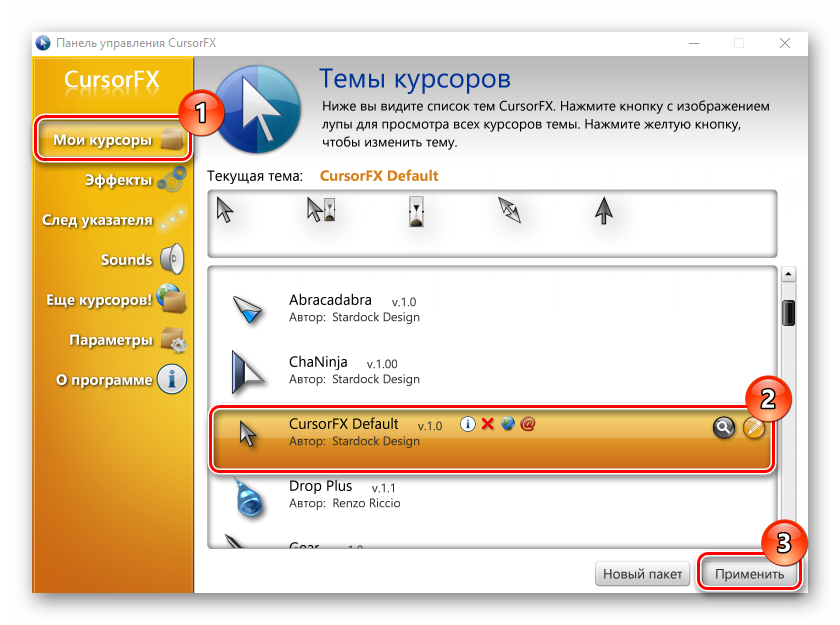 Изменить курсор мыши в Windows 7/10 позволяют не только встроенные средства системы. Для этих целей также можно использовать специальные программы, из которых наиболее популярной является CursorFX.