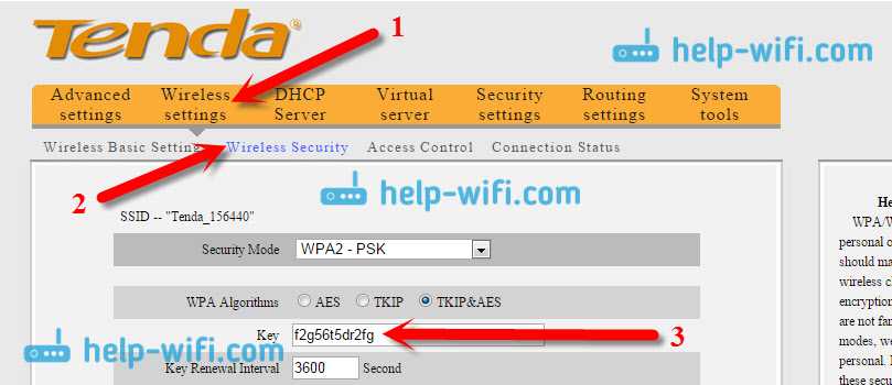 - Tenda. Аналогично с ZyXEL, на сайте com идём в Wireless Settings, Wireless Security, Key. Ключ отобразится на экране.