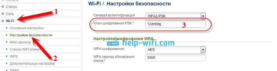 Вводим admin в обоих полях. Если не подходит – смотрим эти данные на корпусе роутера. После входа, слева выбираем «Wi-fi» и «Настройки безопасности». Находим ключ и записываем.
