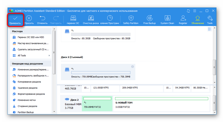 AOMEI Partition Assistant — одно из самых популярных сторонних решений для работы с разделами жестких дисков и подключаемых к компьютеру накопителей. В ее функциональность входит множество полезных инструментов и возможностей, однако сегодня мы затронем только взаимодействие с томом. Все нужные инструменты доступны в бесплатной версии Standard Edition.