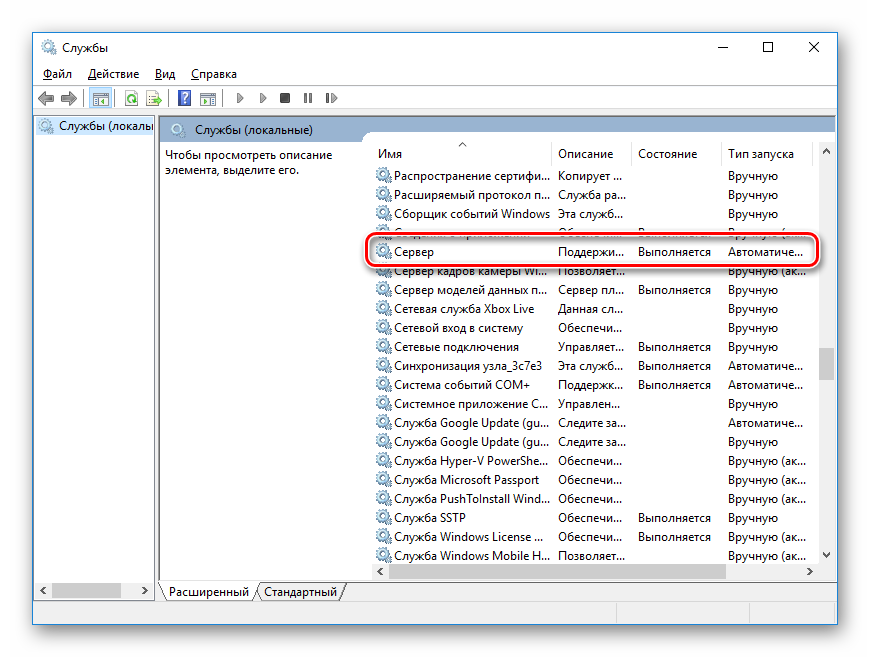 Кроме всего, советуем убедиться в том, что настройка «Сервер» находится в рабочем состоянии. Ее проверка и настройка выполняется так: