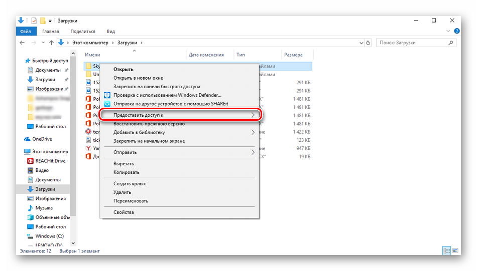 - На необходимой папке нажмите правой кнопкой мыши и выберите строку «Предоставить доступ к».