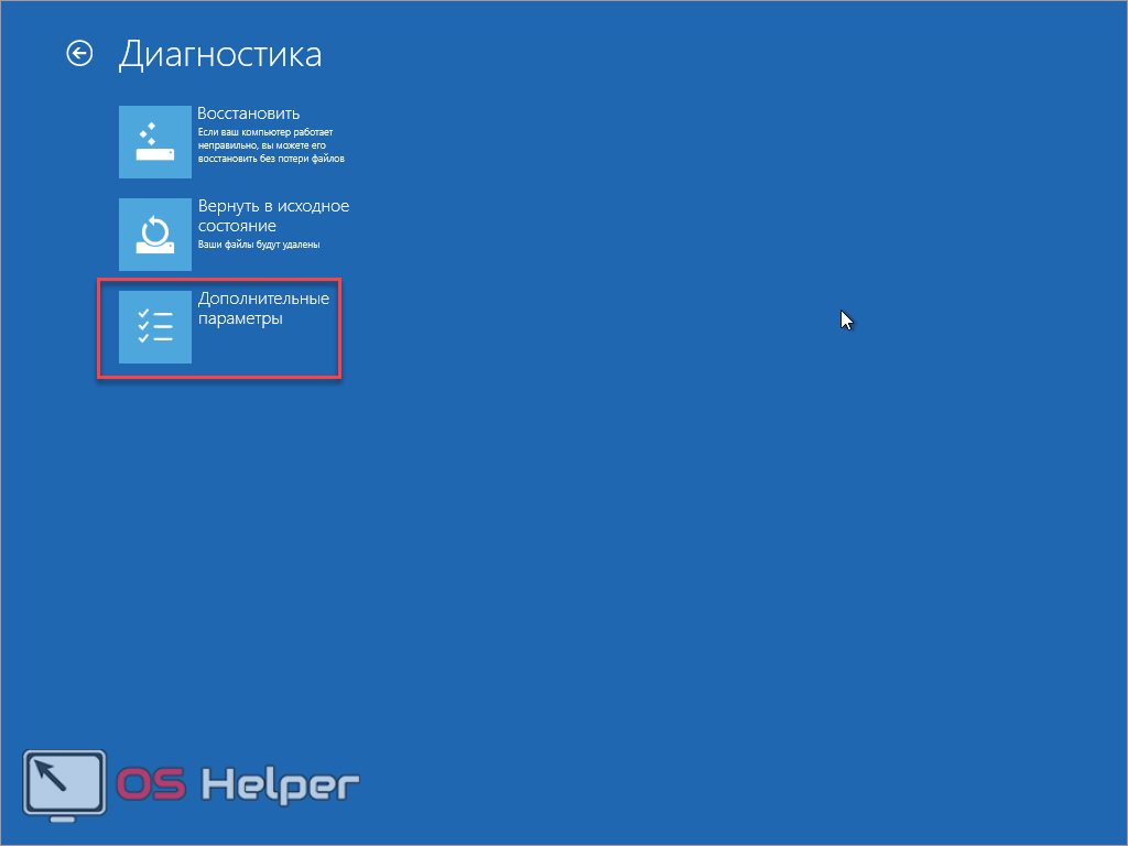5. В меню «Диагностика» следует в первый раз выбрать пункт «Восстановить»;