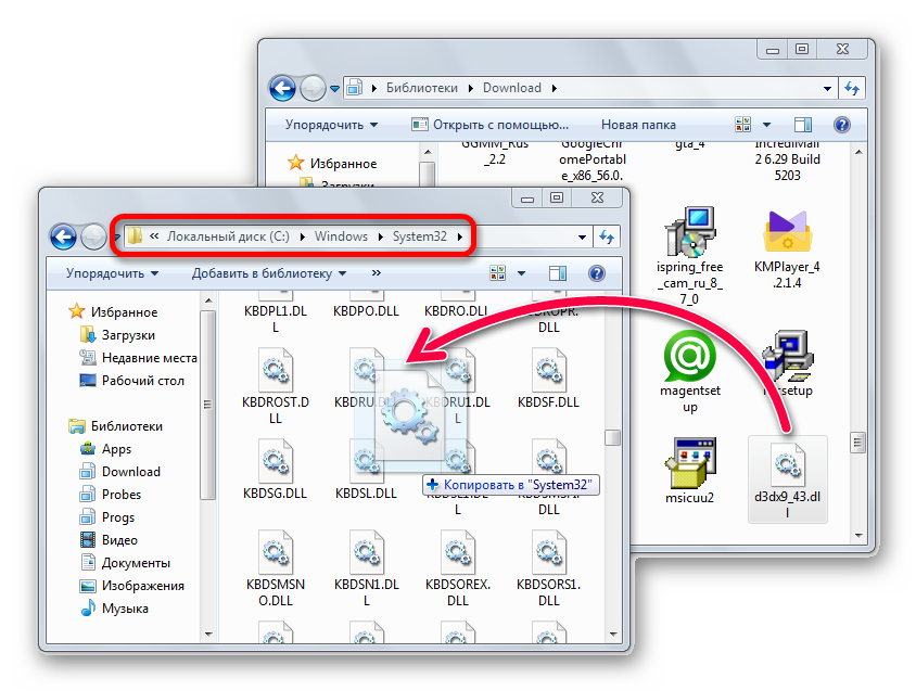 Можно установить d3dx9_43.dll, попросту скачав и скопировав её в системную папку. Если Windows 64-разрядная, то это следующие папки: и , если 32-разрядная, то только последняя.