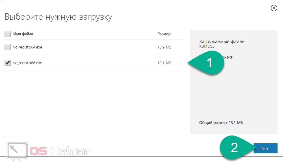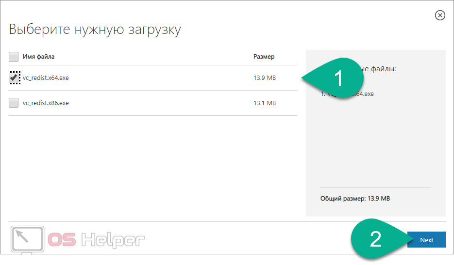 - для 64-битной ОС — файл vcredist_x64.exe