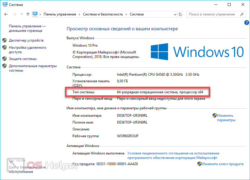 - Перед вами тип используемой операционной системы. В нашем случае это Windows 10 x64 Bit. Запоминаем и идем дальше.