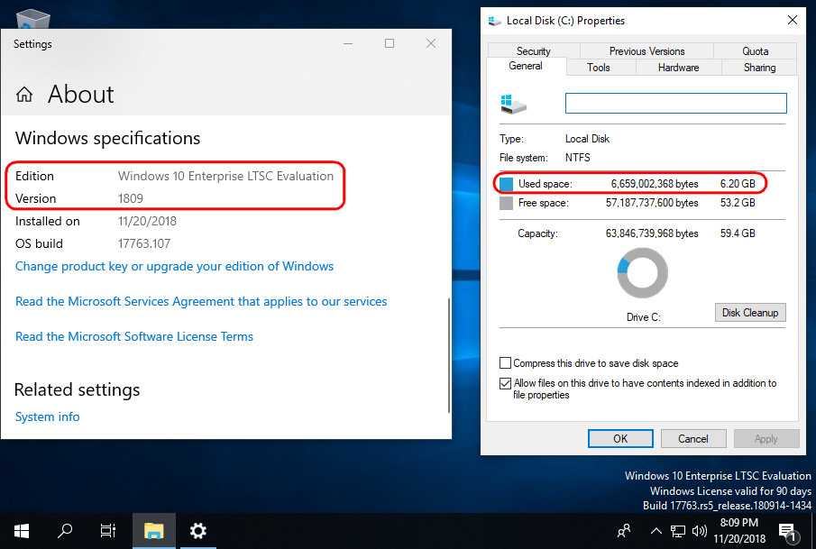 Итак, LTSC — это урезанная сборка корпоративной Win10 в её версии 1809. Только с той лишь разницей, что система не обновится до следующих версий никогда. Сразу же после установки она занимает на диске немногим более 6 Гб (имеется в виду 32-битная версия, 64-битная, соответственно, будет занимать больше).