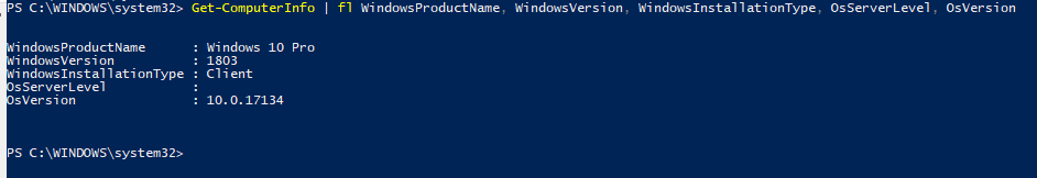 В этом примере на компьютере используется редакция Windows 10 в канале обслуживания Semi-Annual Channel. Используется выпуск 1803.