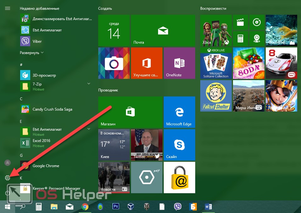 - Первый способ подразумевает переход к цели посредством параметров Windows. Для начала откройте их (сделать это можно через меню «Пуск», кликнув по иконке шестеренки).