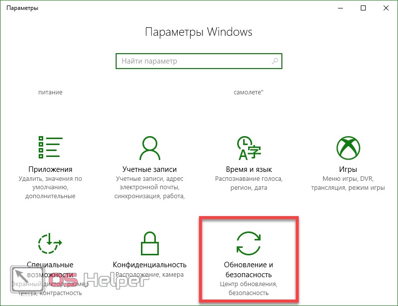 - Теперь откройте плитку под названием «Обновление и безопасность».