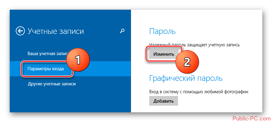 Теперь раскройте вкладку «Параметры входа». В блоке «Пароль» воспользуйтесь кнопкой «Изменить».