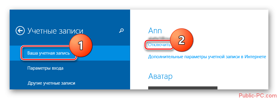 Перейдите в раздел «Ваша учётная запись». Здесь вы найдёте блок, который будет озаглавлен вашим именем. Воспользуйтесь кнопкой «Отключить», чтобы отвязать свою глобальную учётную запись от локальной.