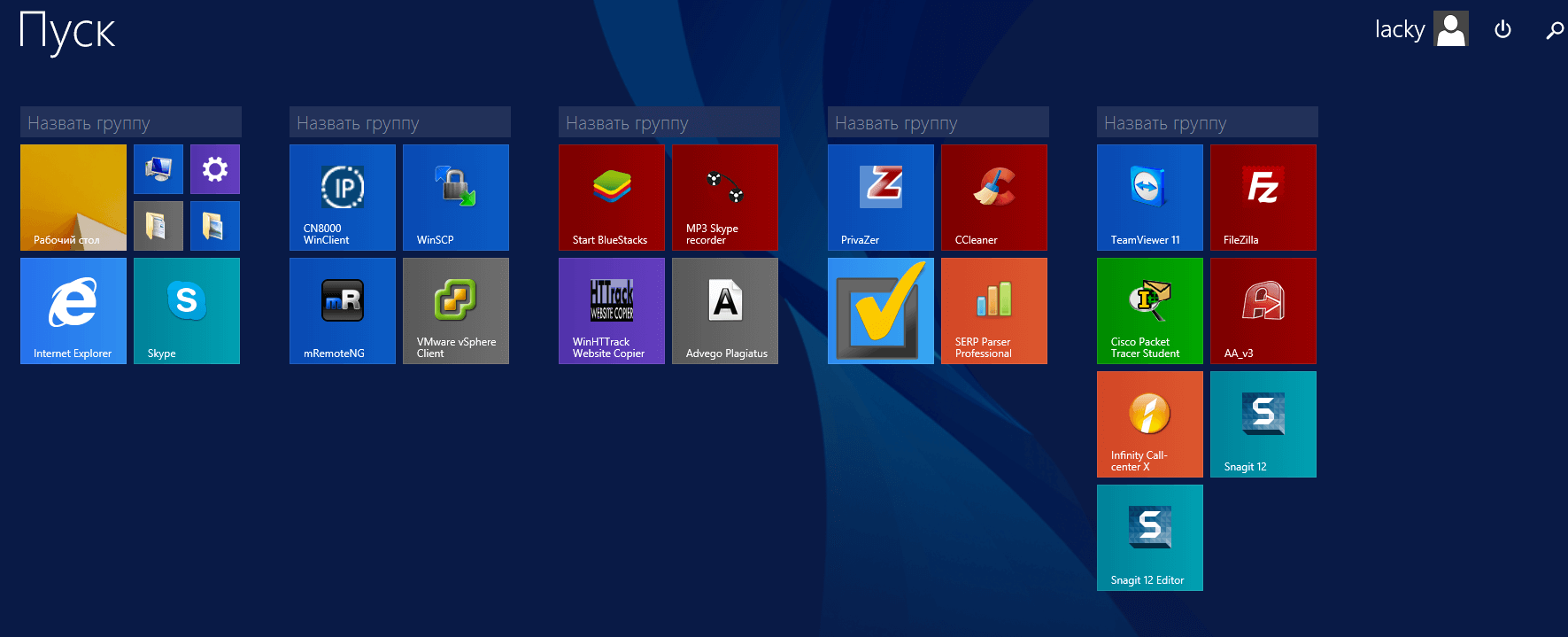 Если кликнуть на пустом месте правым кликом, то можно настроить в пуск windows 8.1 названия групп.