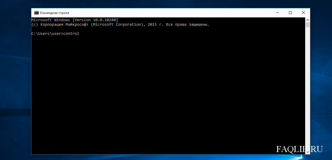 С помощью командной строки можно выполнить любую задачу в операционной системе, в том числе открыть панель управления. Попасть в командную строку можно, если в окно «Выполнить» ввести «cmd». В самой командной строке вводим то же самое, что и вводили в окно «выполнить» в прошлом пункте: «control.exe» или «%windir%\system32\control.exe». Способ также универсален.