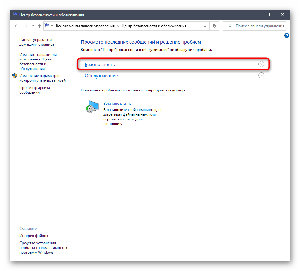 Здесь вас интересует раздел «Центр безопасности и обслуживания».