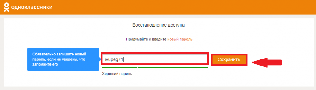 Затем нужно будет придумать и ввести новый пароль. И нажать кнопку «Сохранить».