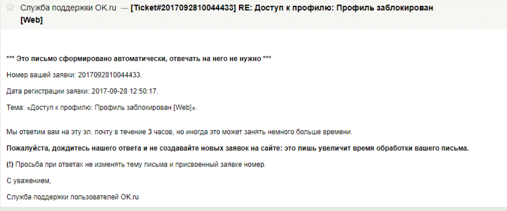Рис. 6 Письмо о восстановлении доступа к Одноклассникам