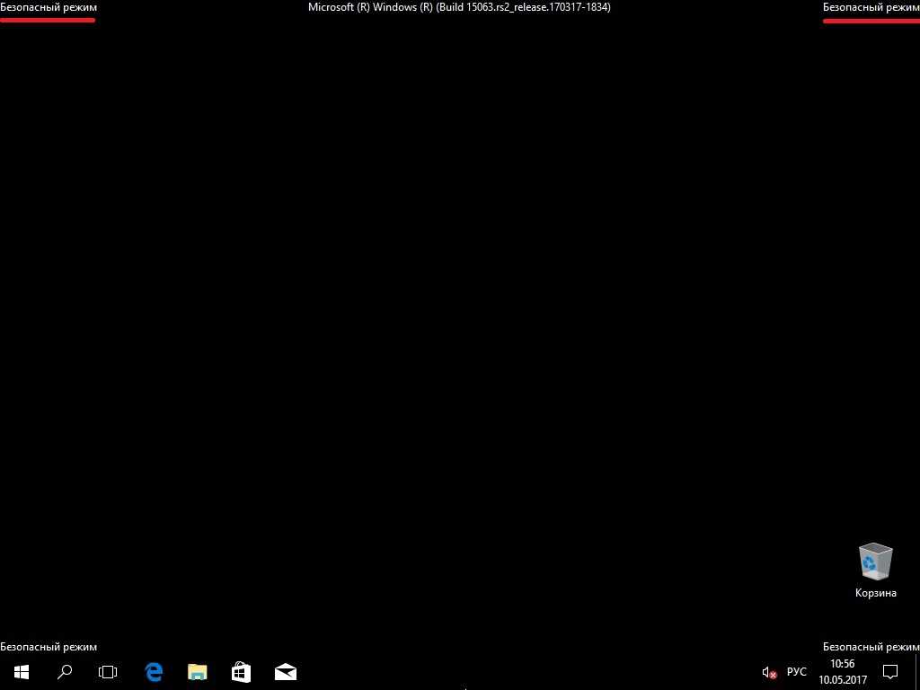 Произойдёт перезагрузка компьютера с выбранным параметром. После загрузки, рабочий стол лишиться обоев, а в углах будет красоваться надпись «Безопасный режим».