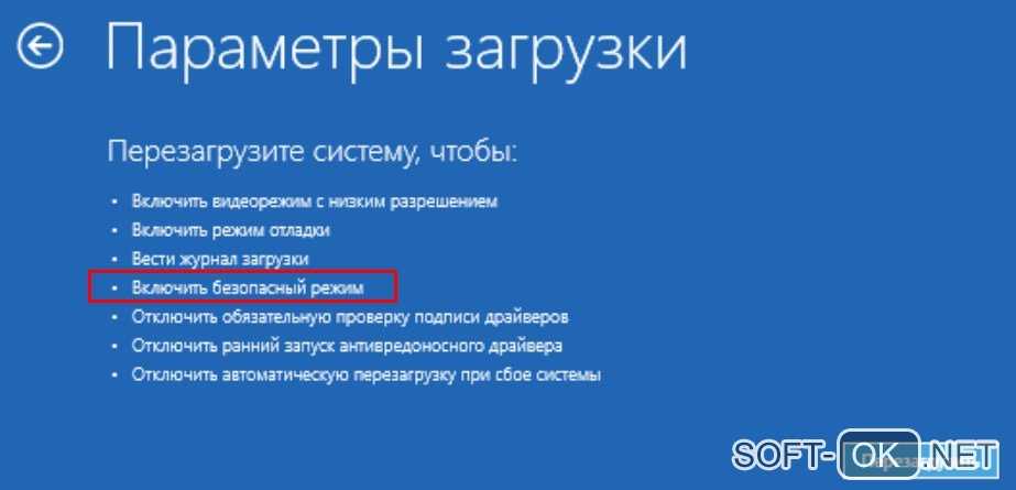 Очередной «рецепт» – это использование особых вариантов загрузки ОС. Как загрузить Виндовс 10 в безопасном режиме с их помощью?