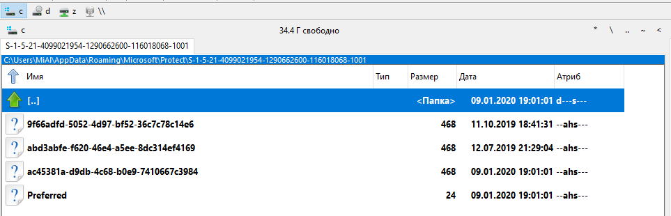 Зашифрованные мастер ключи хранятся в папке вида %appdata%\Microsoft\Protect\{sid}\*. В этой записи:
