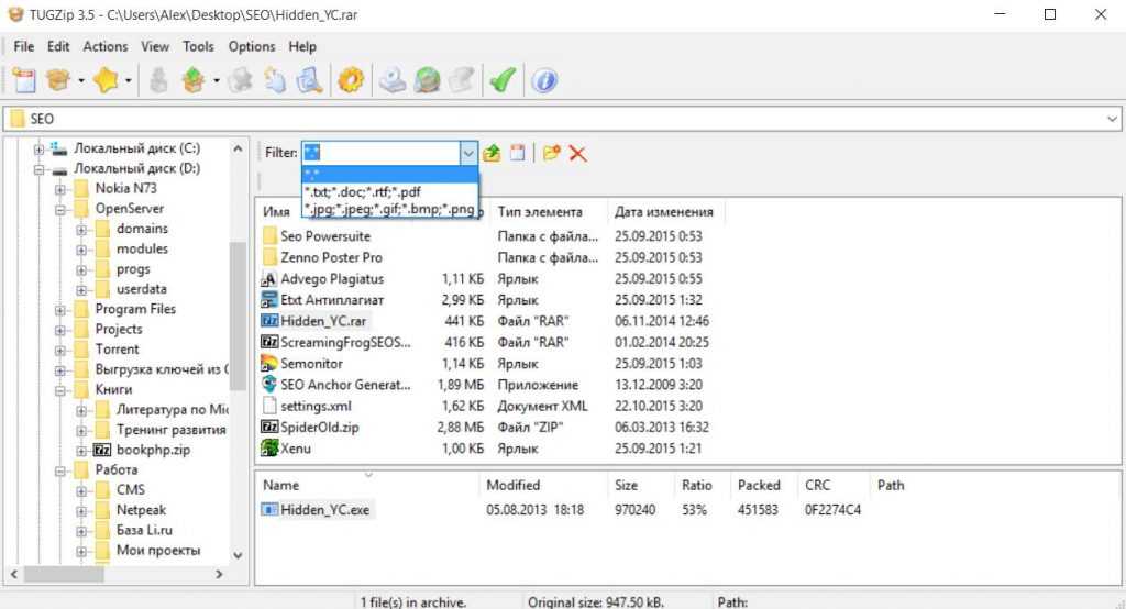 - Высокая скорость и степень сжатия. Готовые архивы получаются на 8-15% менее объемными, чем у аналогичных продуктов;