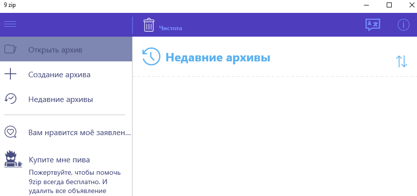 Следующий архиватор многие пользователи именуют одним из самых функциональных в своей среде. Такая функциональность получается из-за особой техники, которая позволяет включить наибольшую силу ЦП. Как только вы запускаете данный софт, сразу замечаете его удивительный дизайн. Он довольно современен: