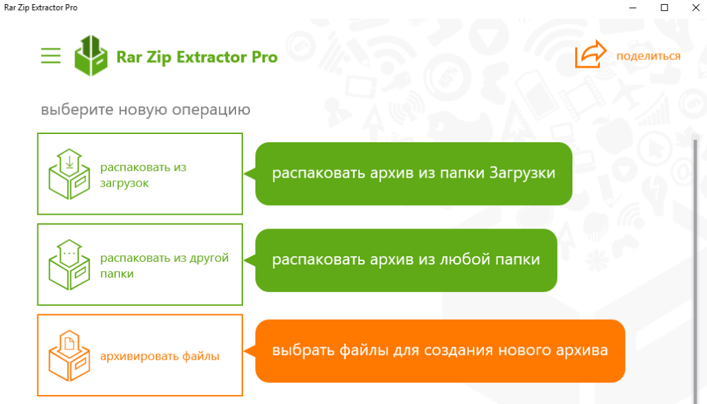- Распаковка большого количество архивных форматов, упаковка в ZIP, LHA, ZIPX;
