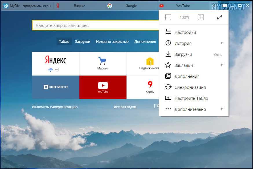 Интерфейс Яндекс.Браузер
