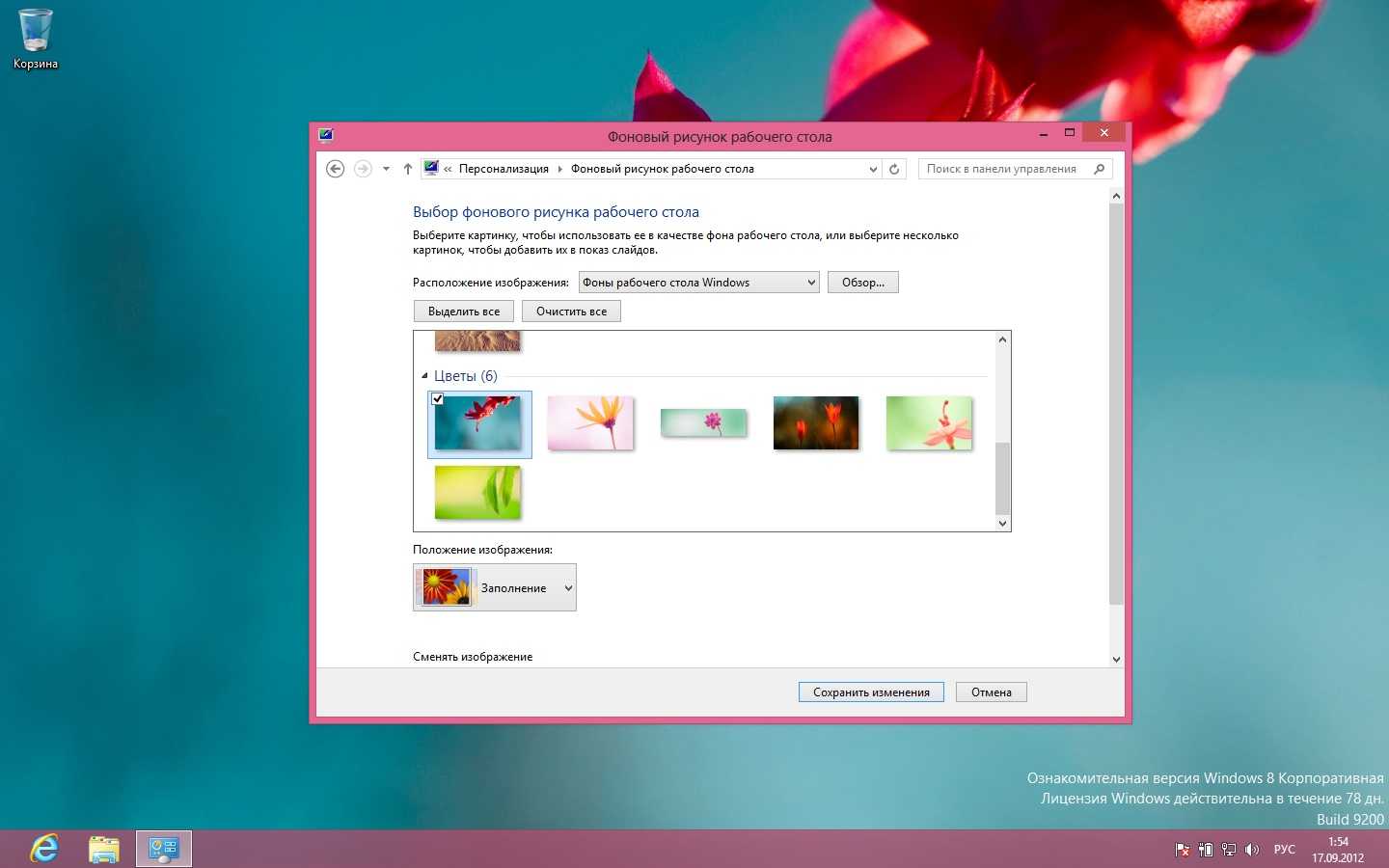 Здесь можно, соответственно, настроить фон рабочего стола. Можно выбрать другой сплошной цвет из представленной палитры.
