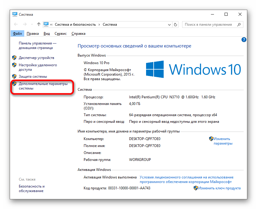 - Перейдите по пути «Панель управления» — «Система и безопасность» — «Система» — «Дополнительные параметры системы».
