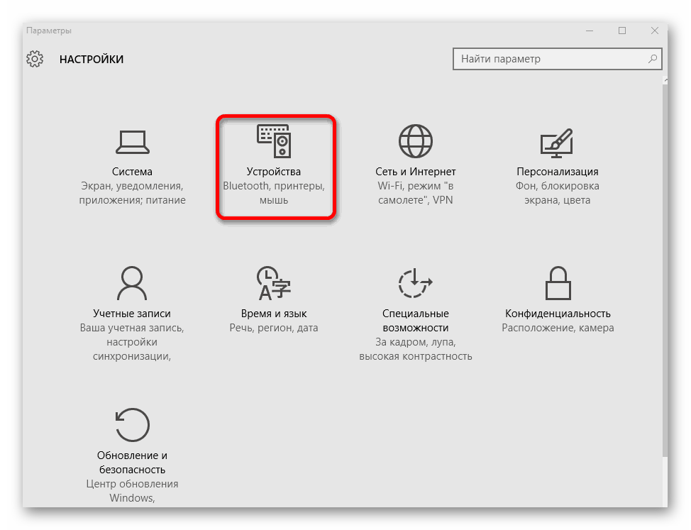 В меню ищите значок «Устройства»;