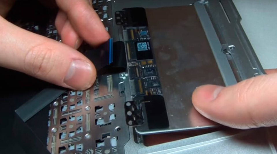 Если взглянуть на разобранный ноутбук, тачпад крепится к материнской плате через разъем. Также как обычные контакты, от подвержен коррозии. Если на ноутбук ранее выливалась вода, есть риск окисления.