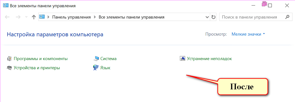Рис.12 Список элементов панели управления после изменения параметра локальной групповой политики