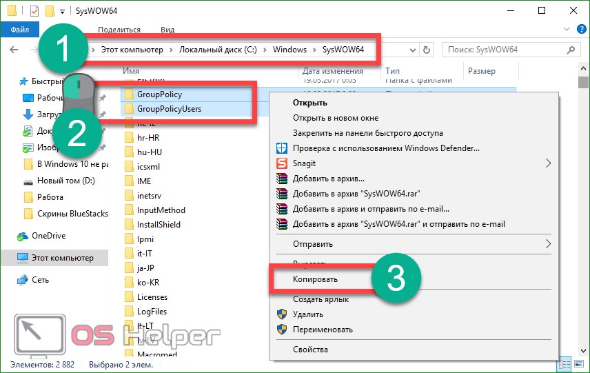 - Если у вас 64-разрядная система, после установки скопируйте папки GroupPolicy, GroupPolicyUsers и файл gpedit.msc из папки WindowsSysWOW64 в WindowsSystem32.
