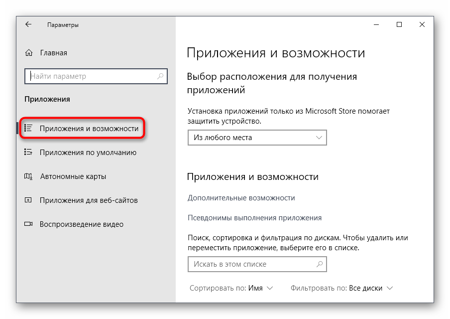 - Перейдите в раздел Пуск > Параметры > Приложения > Приложения и возможности.