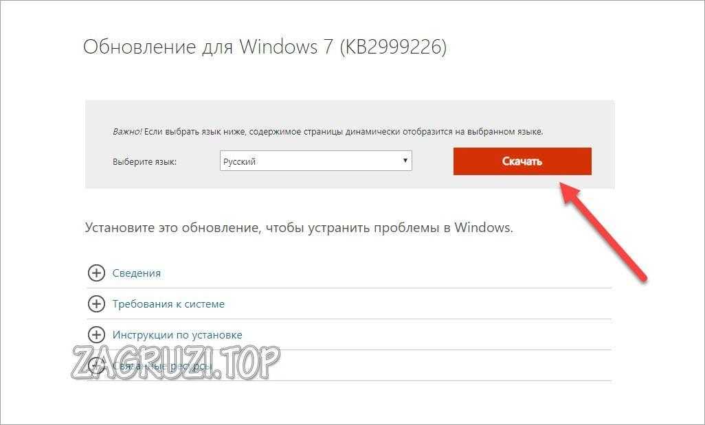 - Установите обновление KB2999226 для вашей системы. Если при установке обновления возникнут проблемы, далее будет описан возможный путь решения. Скачать KB2999226 можно с официального сайта:
